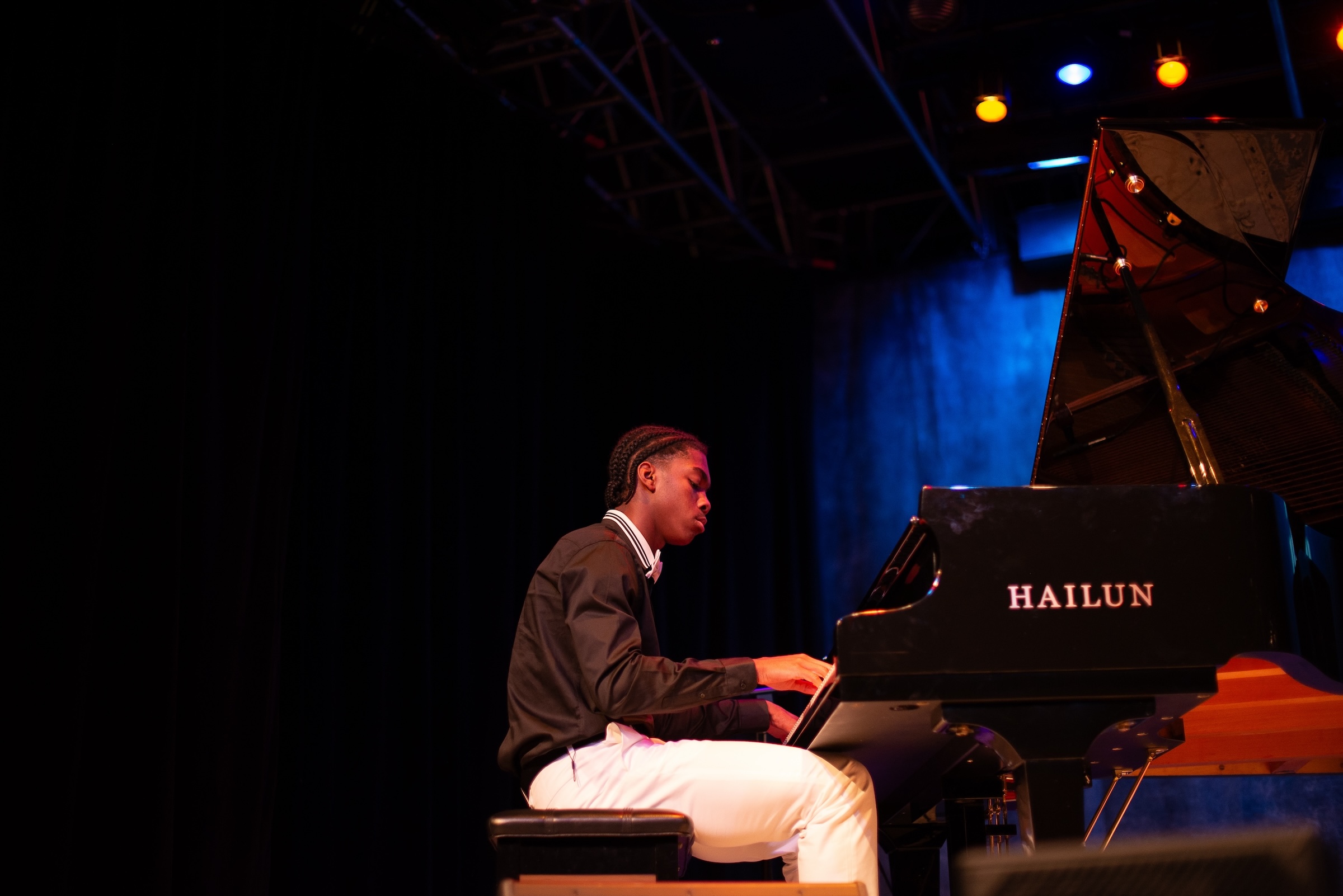 When he’s not playing piano, Aaron is playing Power Forward and Center on his AAU Basketball team, OTB which stands for Off The Bench. But here’s the thing - Aaron doesn’t just make magic off the bench - he’s fire on the piano bench as well. One of his big